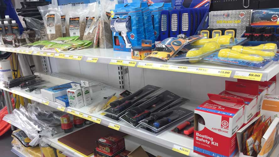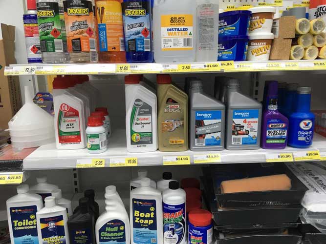 Categories » View our Product RangeBoating Hardware, Safety Gear, Lubricants, Cleaning Products For boat owners cruising the Gippsland Lakes, the Metung Village Store stock a range of boating hardware, outboard motor lubricants, cleaning products, safety kits, life jackets, distress flares and other accessories. Some of the boating accessories we stock … Marine spotlights and pocket lights. Life Jackets. St John “Just in Case” Boating Safety Kits. (First aid kit, Glow stick, whistle, floating jar.) Crewsaver Approved Distress Flares (Inshore.) Outboard motor oil and injector cleaner. Methylated spirits, turpentine and kerosine. Hull cleaner. Boat toilet holding and flush tank organic concentrate. « Previous | Next »